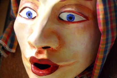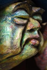 Tous les masques que vous voyez là ont joué dans divers spectacles ou ont été utilisé pour des improvisations au cours de stages . Ils ne représentent qu’une toute petite partie des nombreux masques que j’ai créé depuis le premier en 1967.